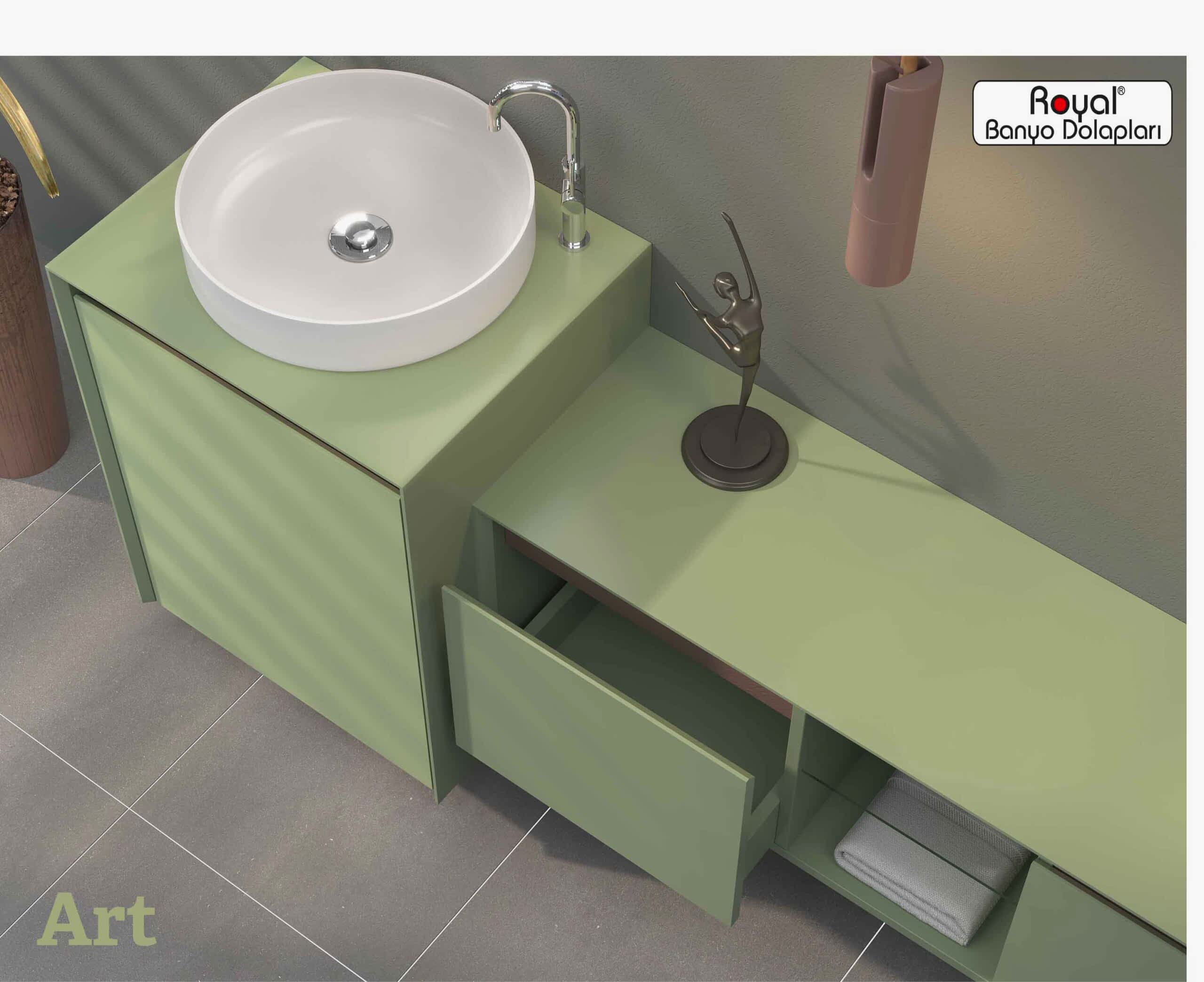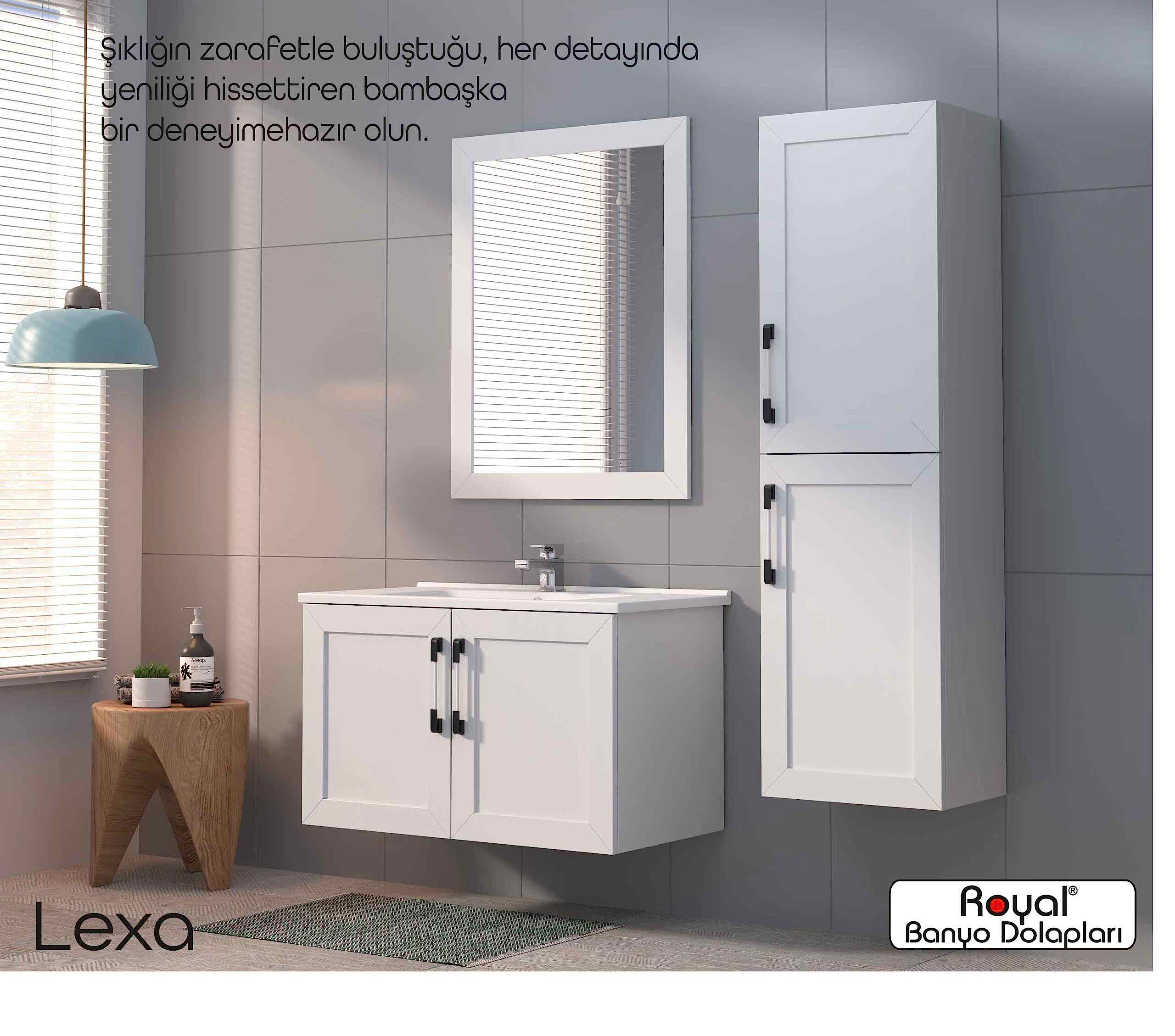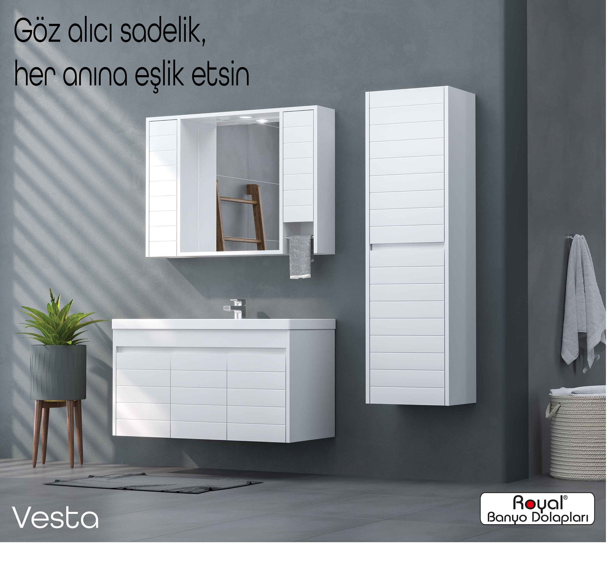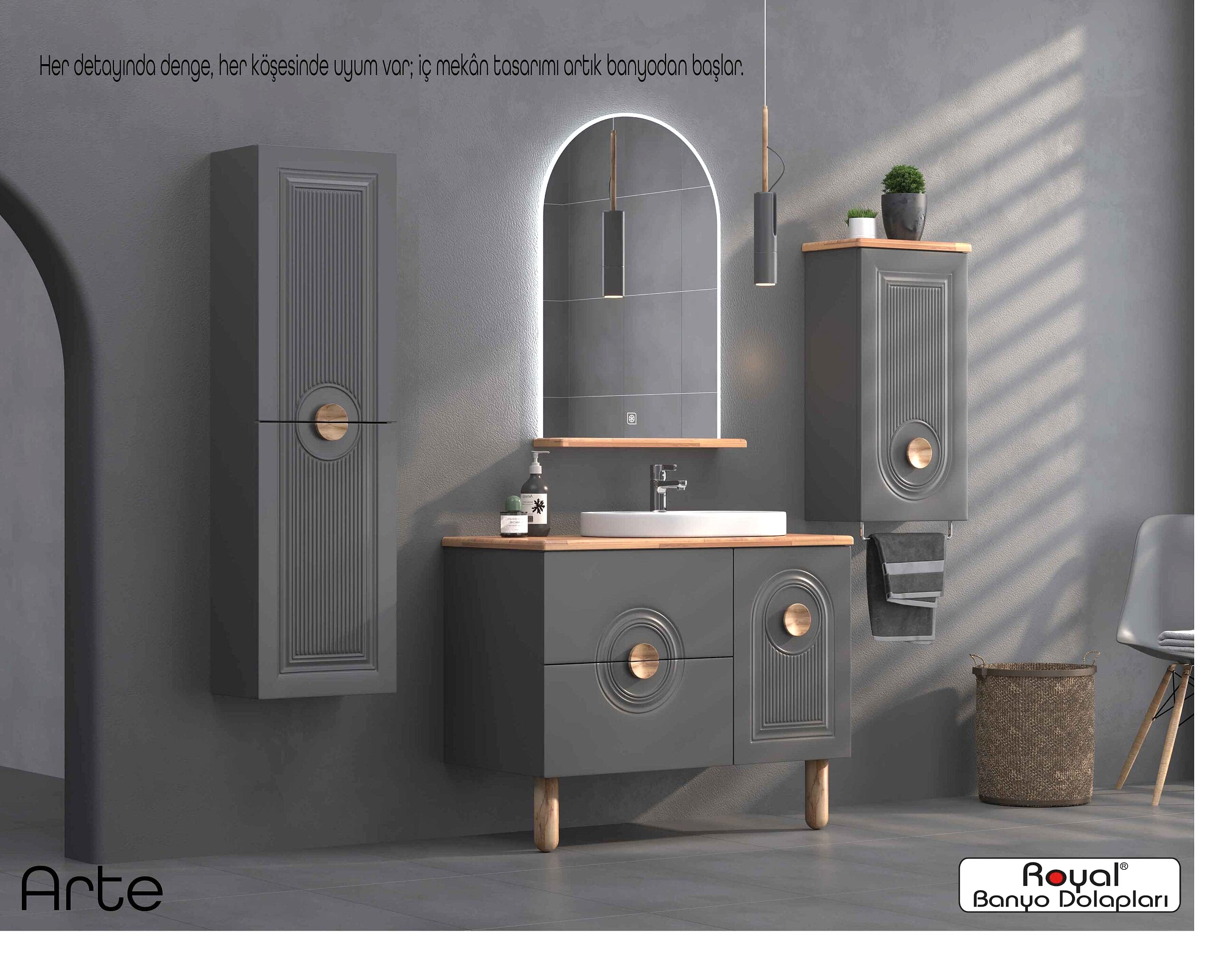 Royal banyo dolapları; suya ve neme dayanıklı özel gövdelerle üretilen, uzun ömürlü ve estetik görünümlü banyo mobilyalarıdır. Modern üretim teknikleriyle tasarlanan bu dolaplar: