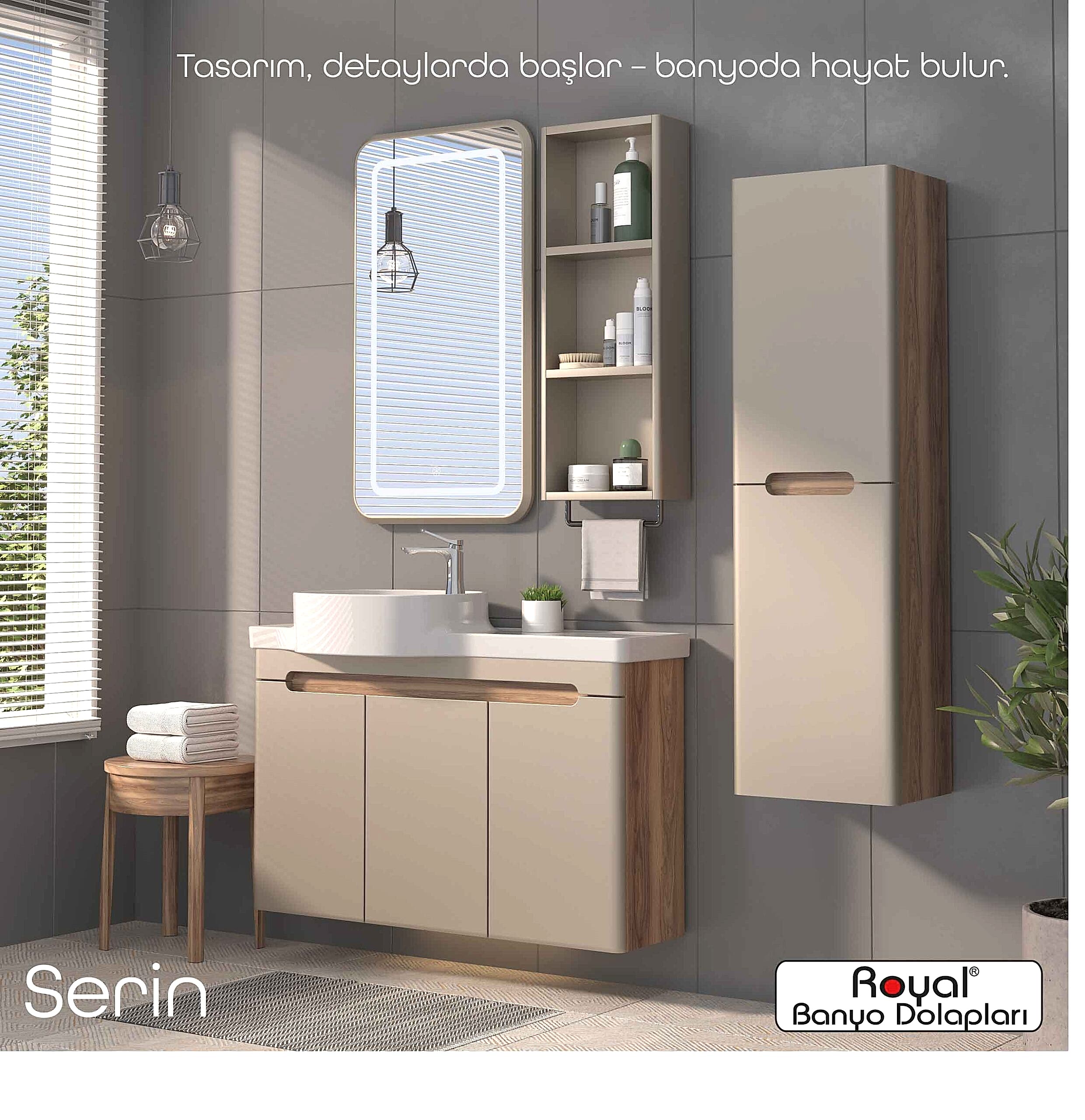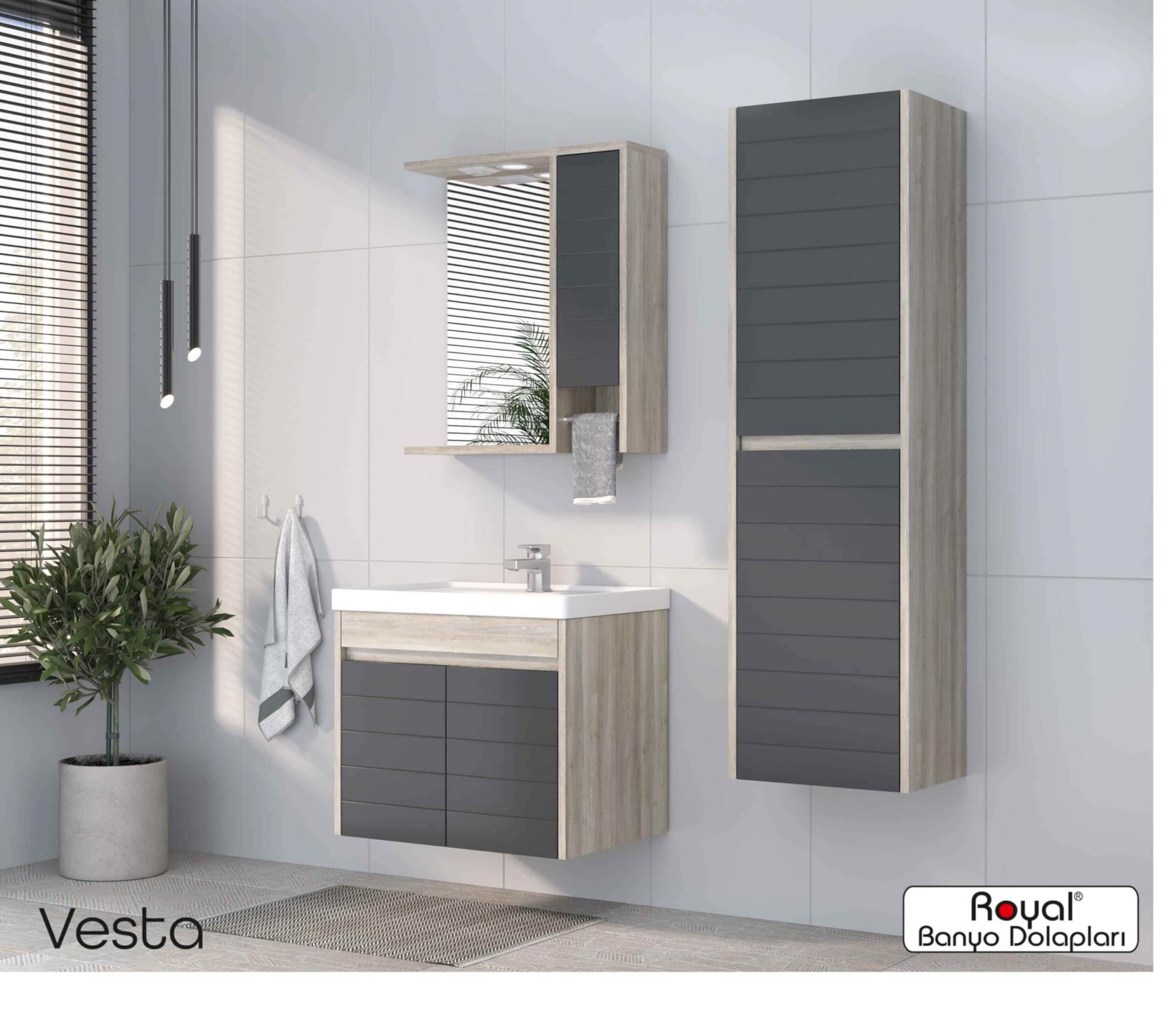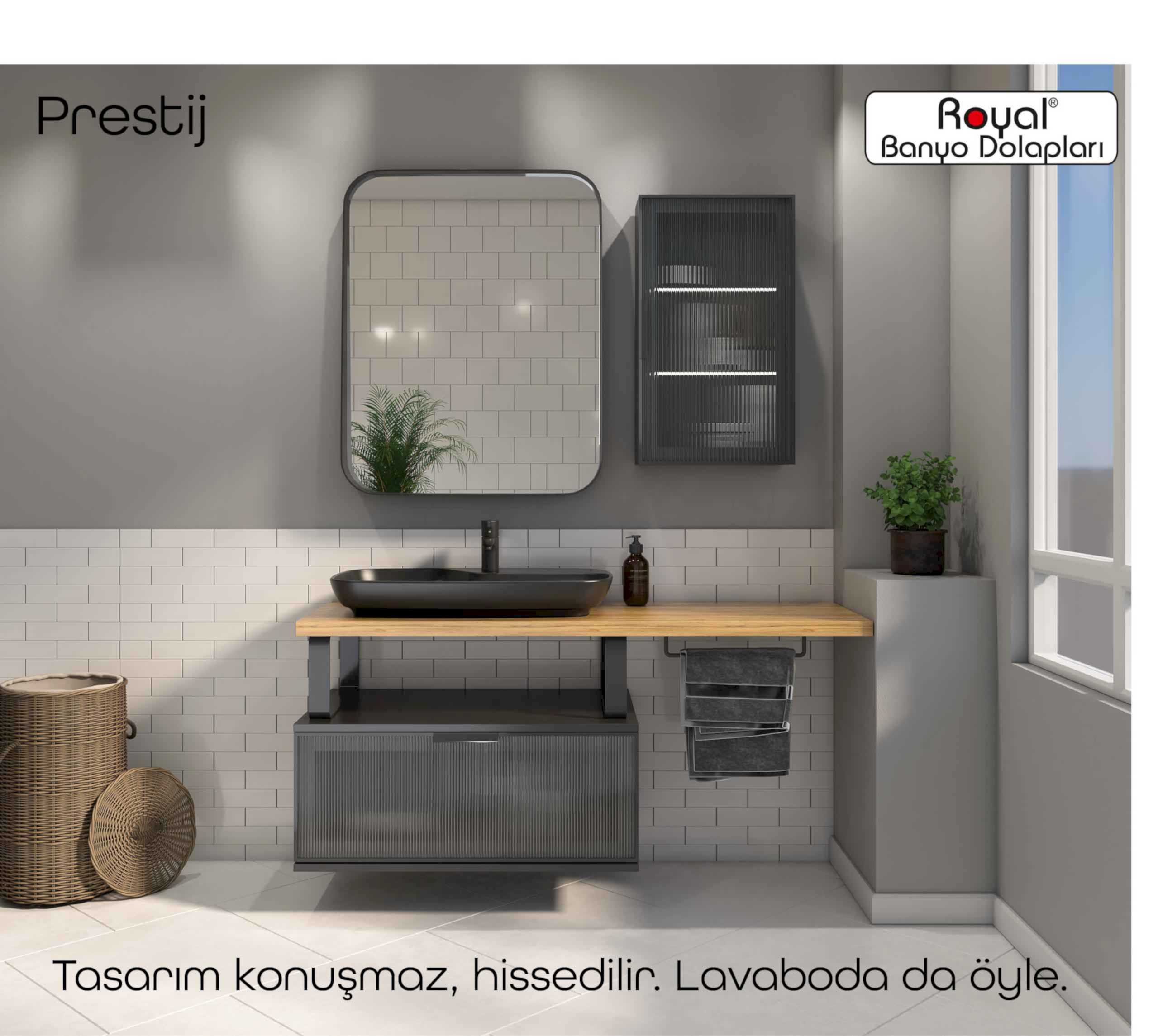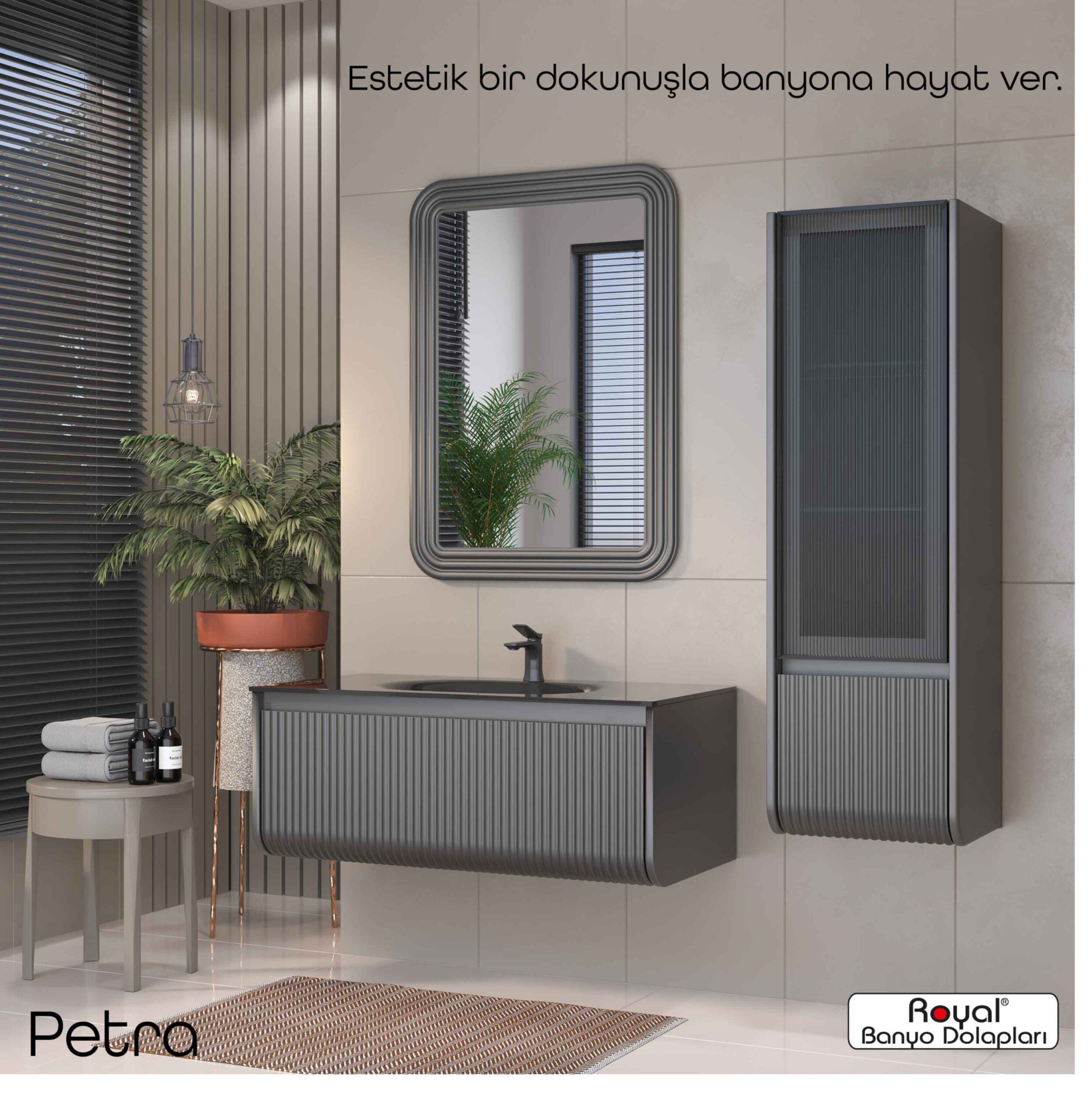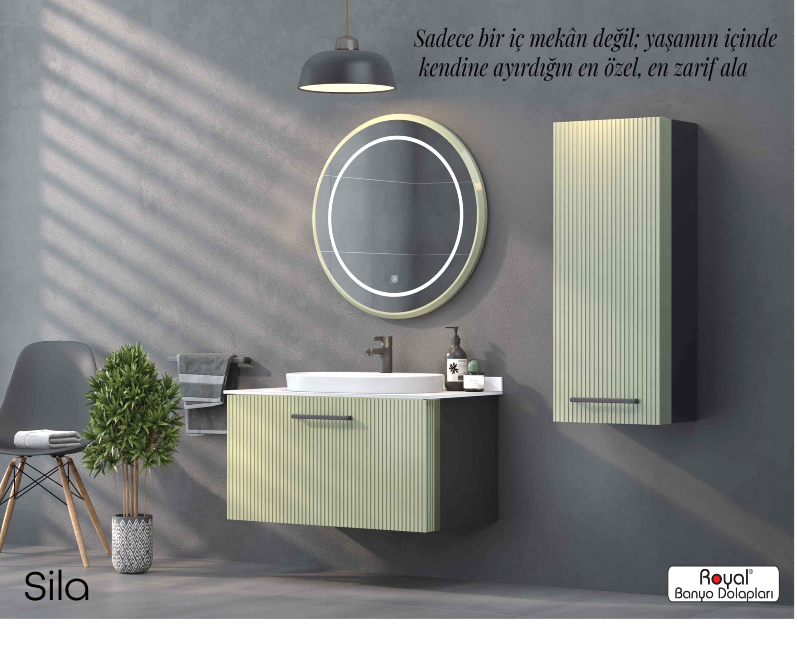 Royal banyo dolapları; suya ve neme dayanıklı özel gövdelerle üretilen, uzun ömürlü ve estetik görünümlü banyo mobilyalarıdır. Modern üretim teknikleriyle tasarlanan bu dolaplar: