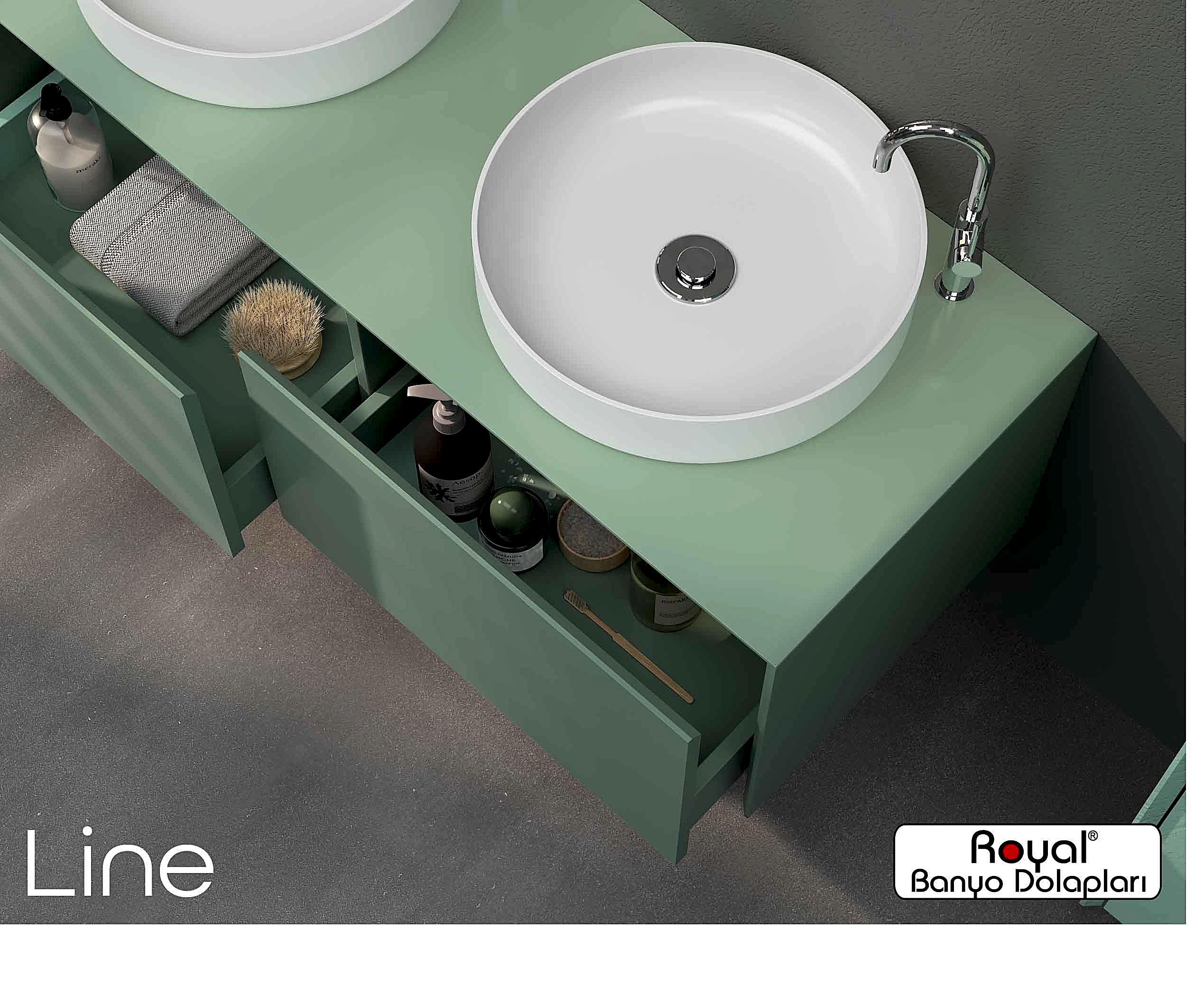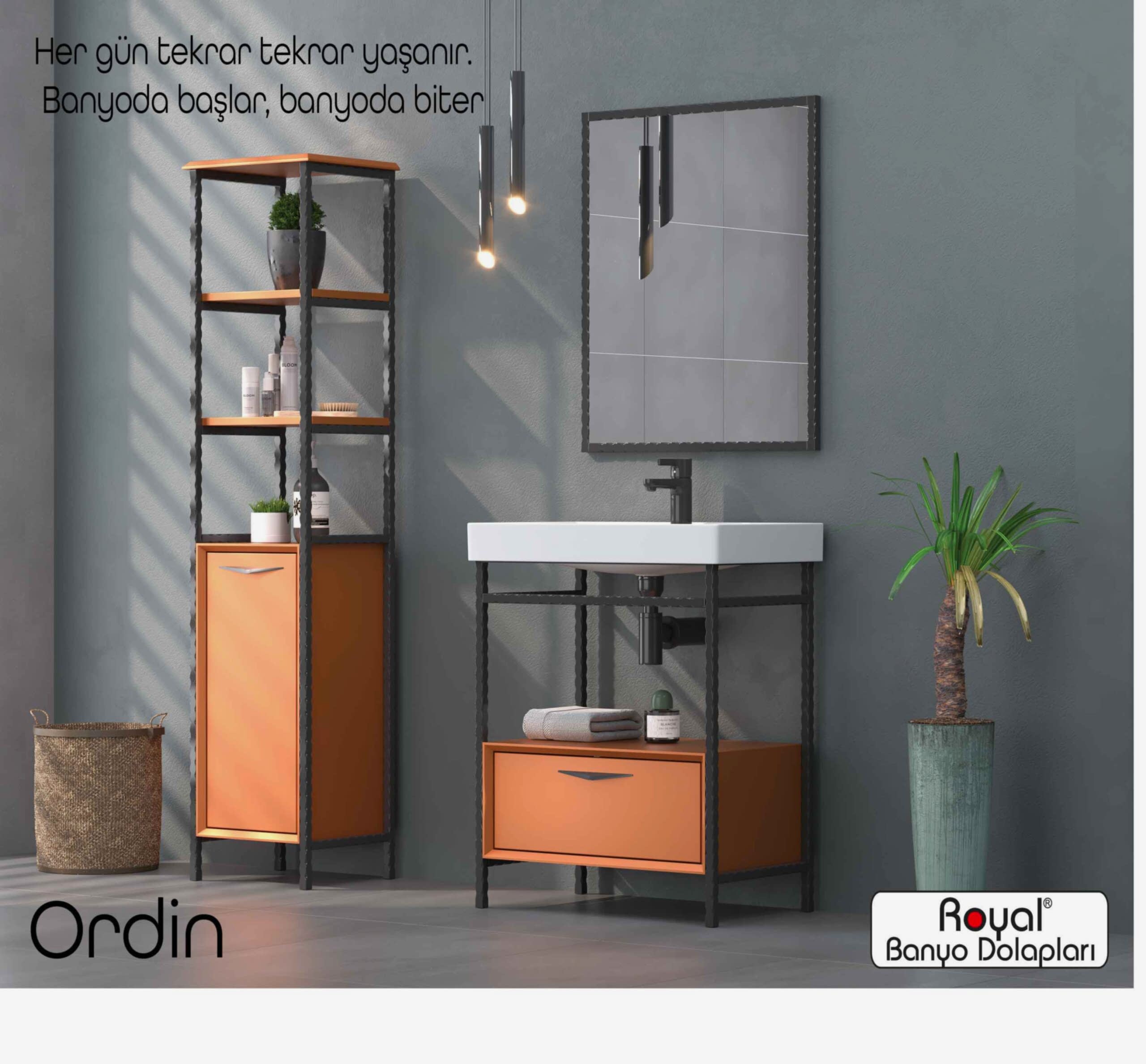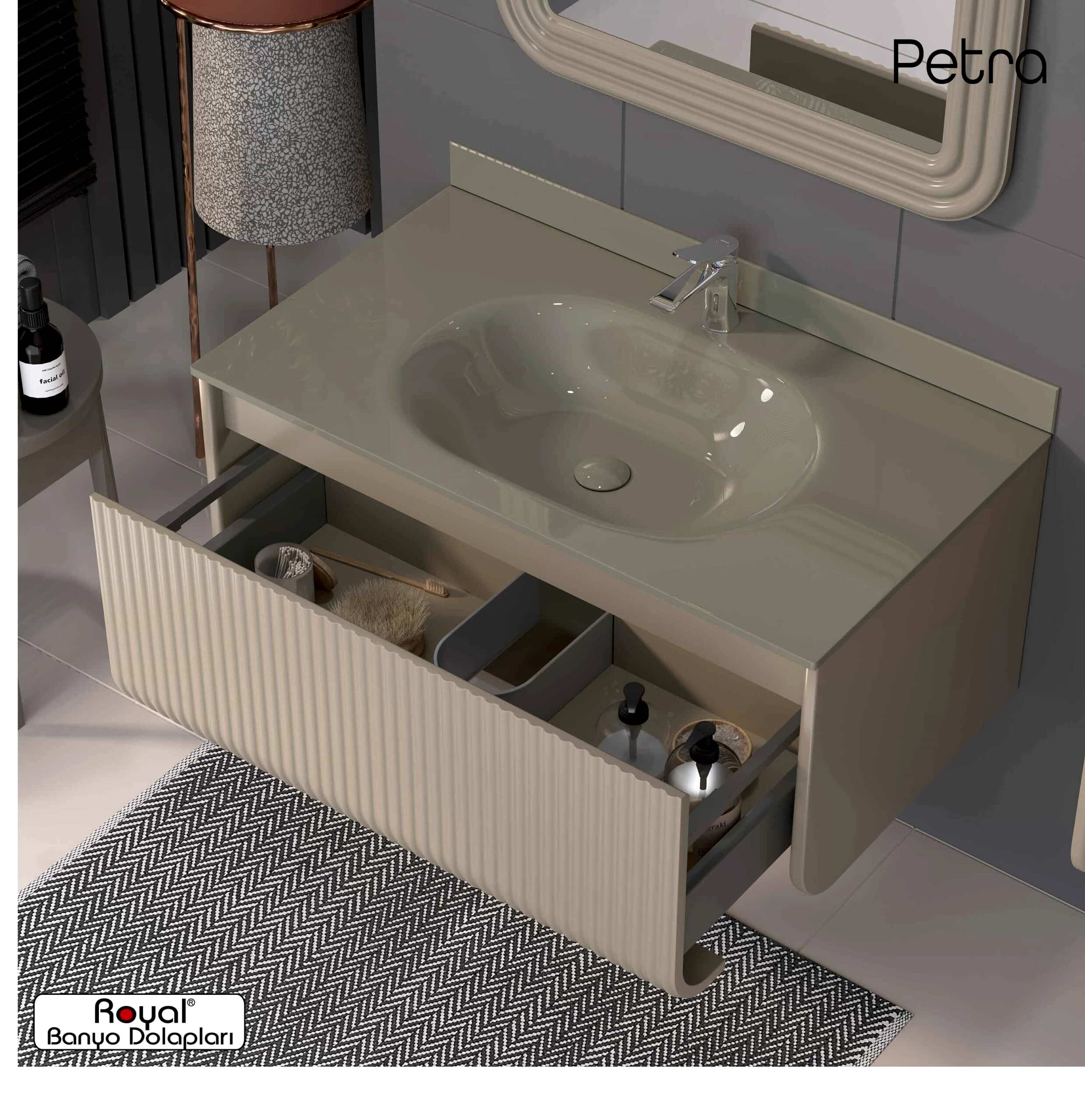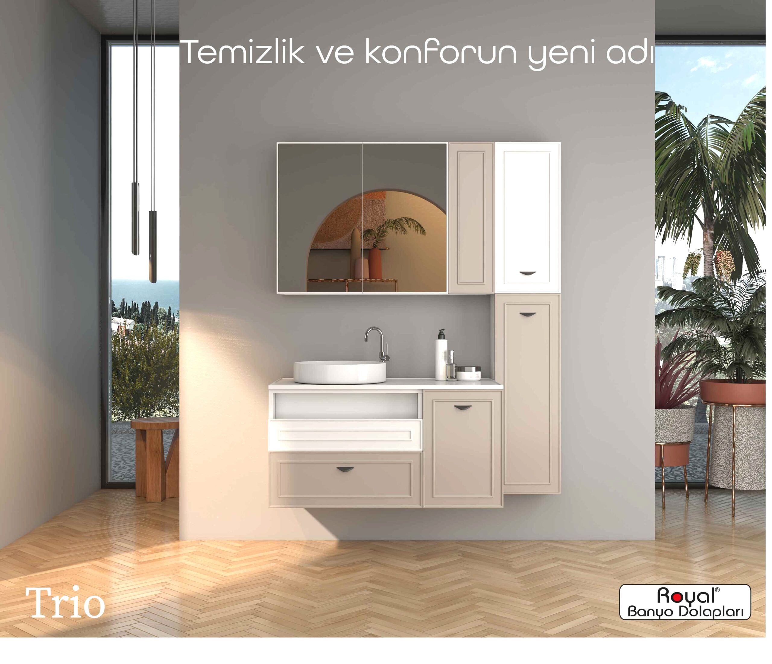 Royal banyo dolapları; suya ve neme dayanıklı özel gövdelerle üretilen, uzun ömürlü ve estetik görünümlü banyo mobilyalarıdır. Modern üretim teknikleriyle tasarlanan bu dolaplar: