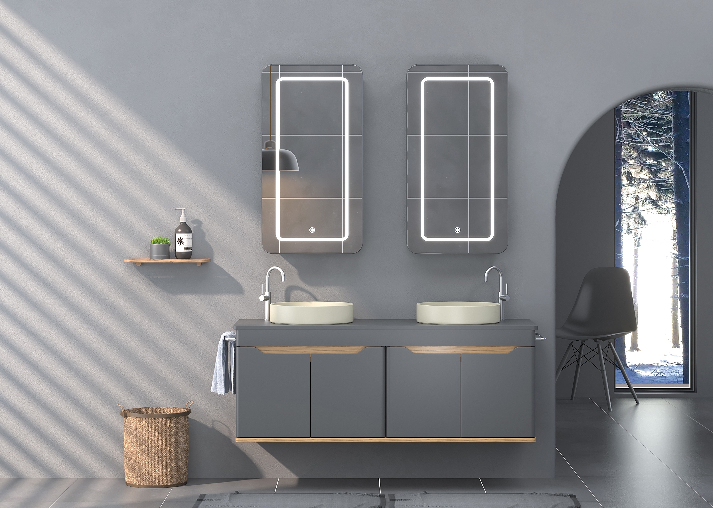 - Dekoratif aynalar ve LED aydınlatmalar