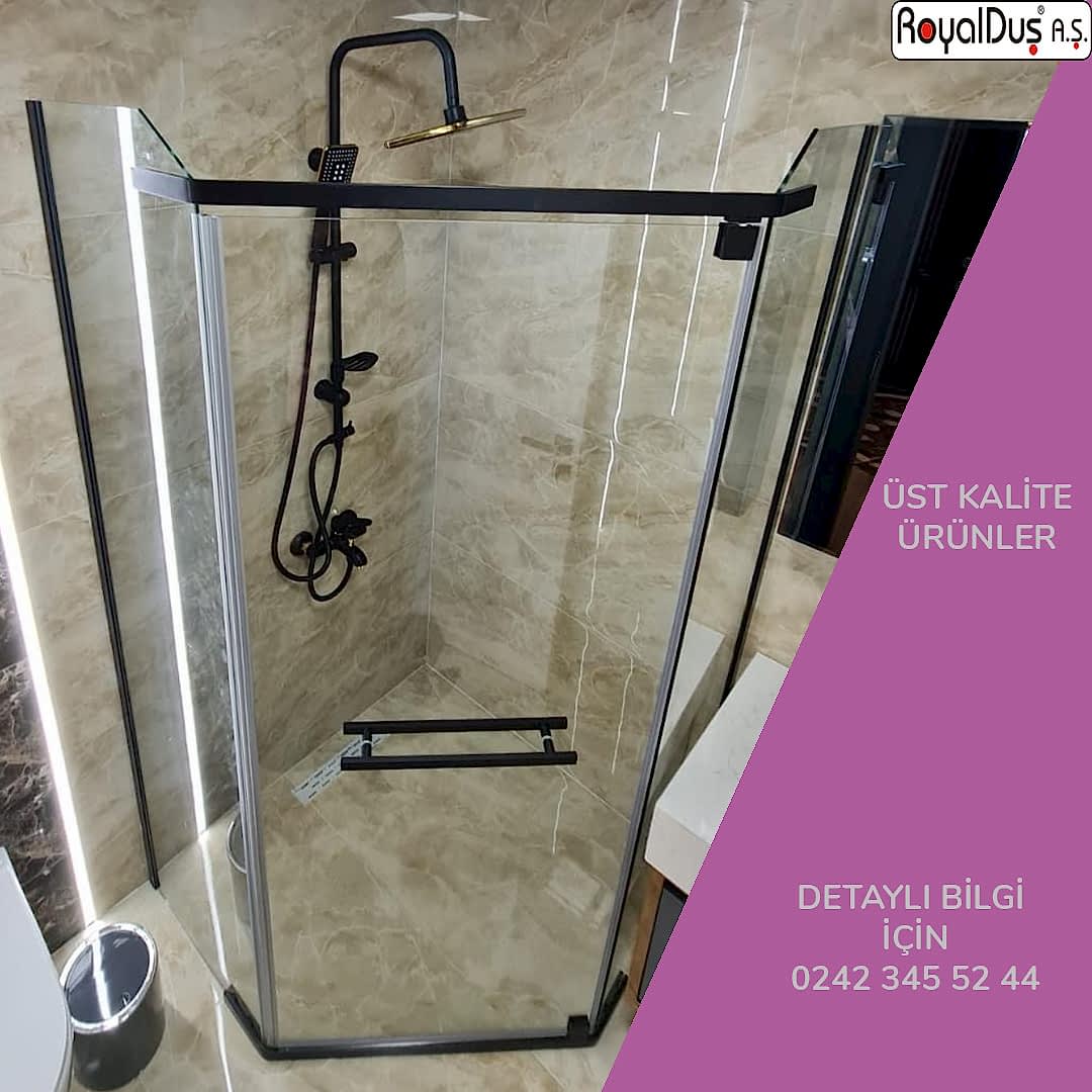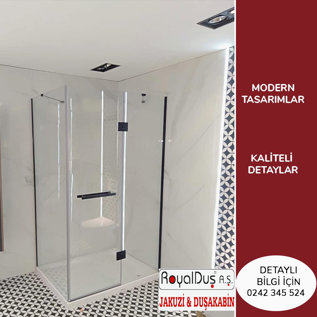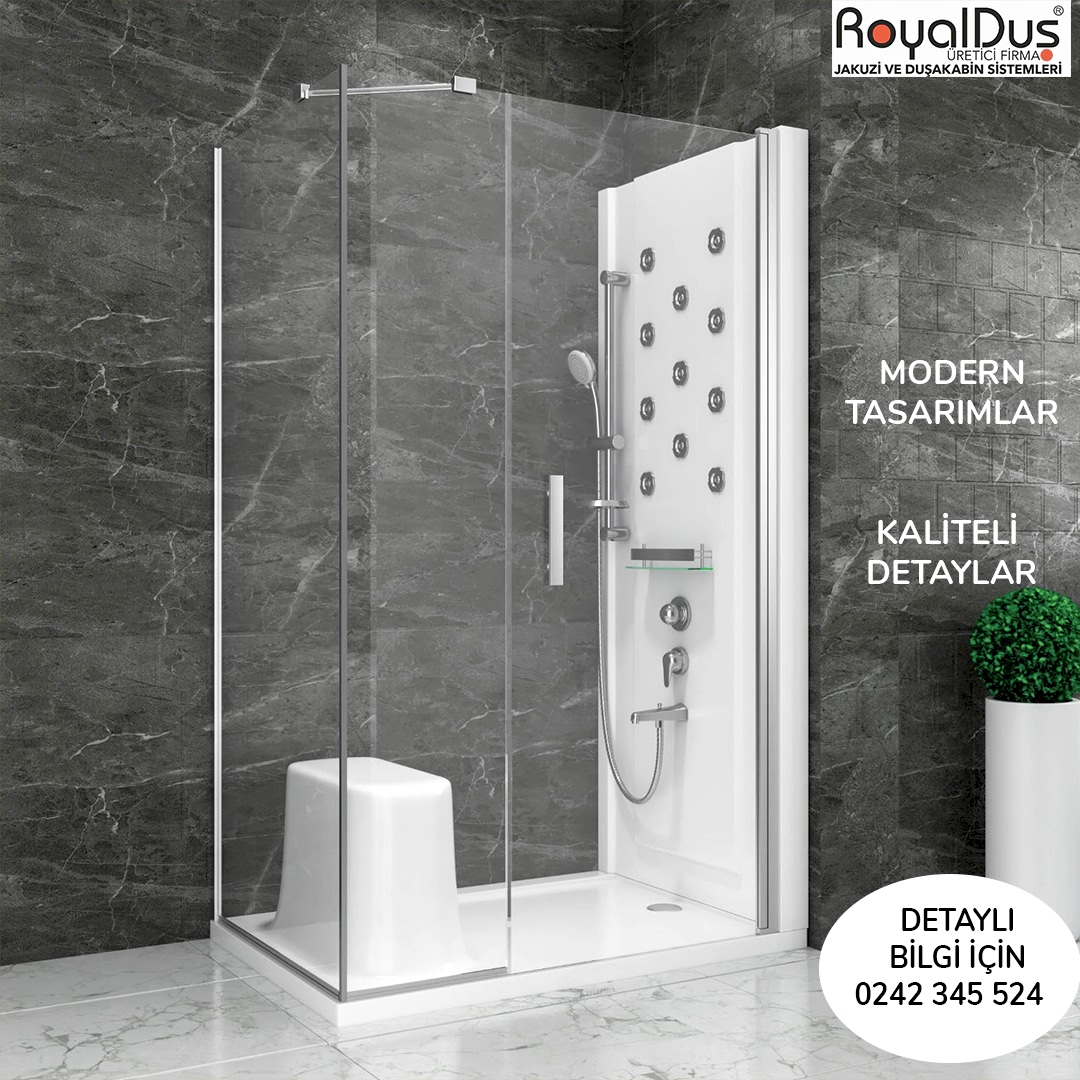 Royal Duş A.Ş. üretimi menteşeli duşakabinler; yüksek güvenlikli temperli cam, paslanmaz menteşe sistemleri ve özel ölçü üretim seçenekleriyle konut, villa, otel ve SPA projelerinde yoğun olarak tercih edilmektedir.