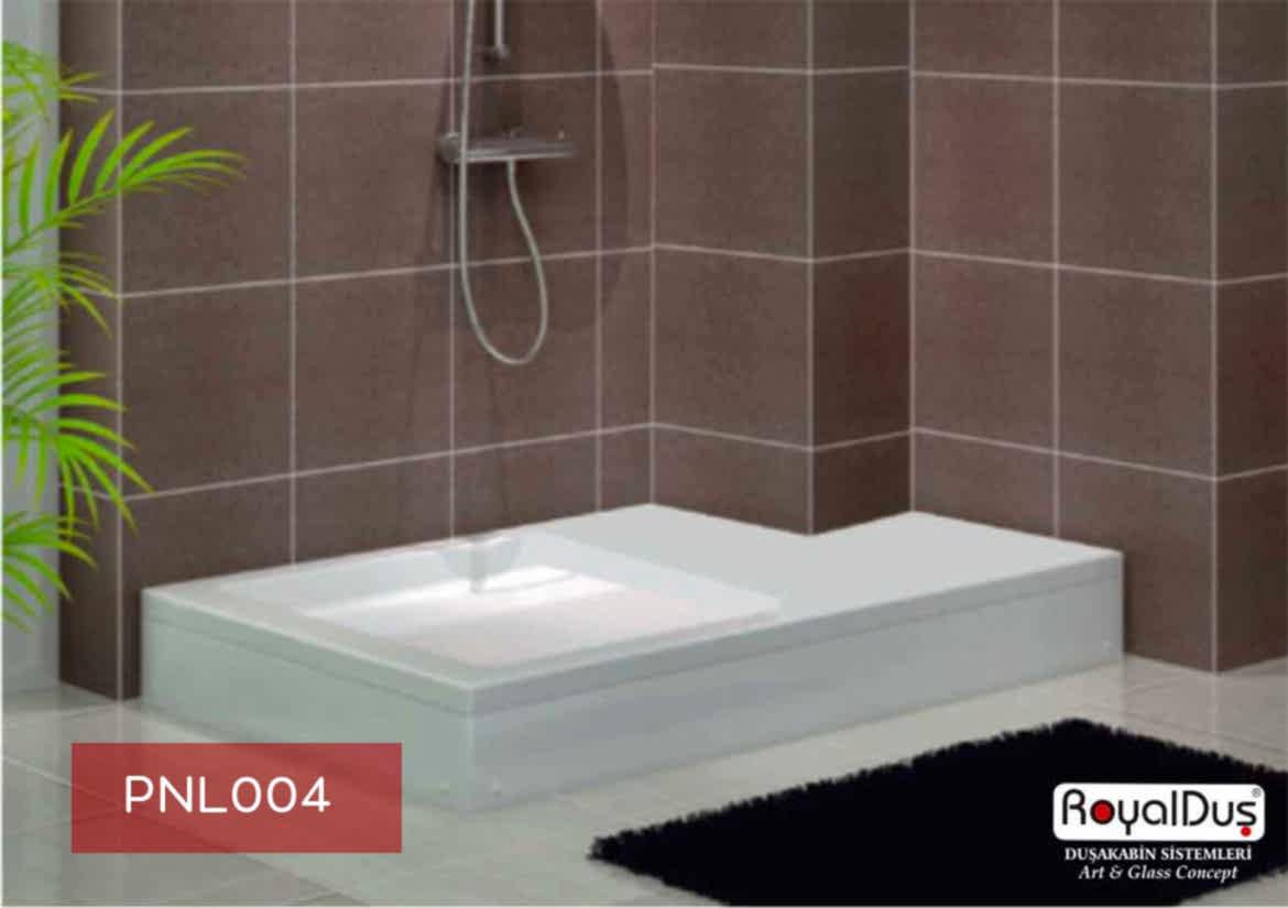Royal Duş A.Ş. tarafından üretilen panelli duş tekneleri; yüksek kaliteli akrilik malzeme, güçlendirilmiş alt iskelet ve özel kaplama sayesinde uzun yıllar formunu korur.